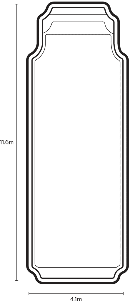 At the shallow end, grand entry steps reflect classical styling and double as convenient seating when entertaining guests. The deep end includes a built-in ledge, offering a place to sit and relax during hot summer days. With a depth of 1.1m to 2.0m, the Corinthian provides ample space for swimming, making it ideal for large gatherings, active families, or those who enjoy fitness in the water